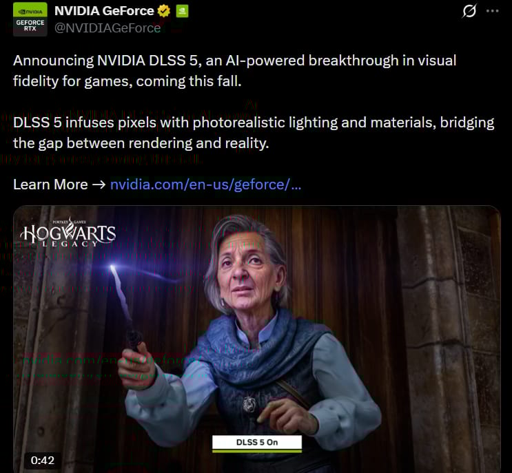 Unlike offline video AI models, DLSS 5 is deterministic and temporally stable, meaning consistent frame-to-frame output suitable for real-time gameplay.